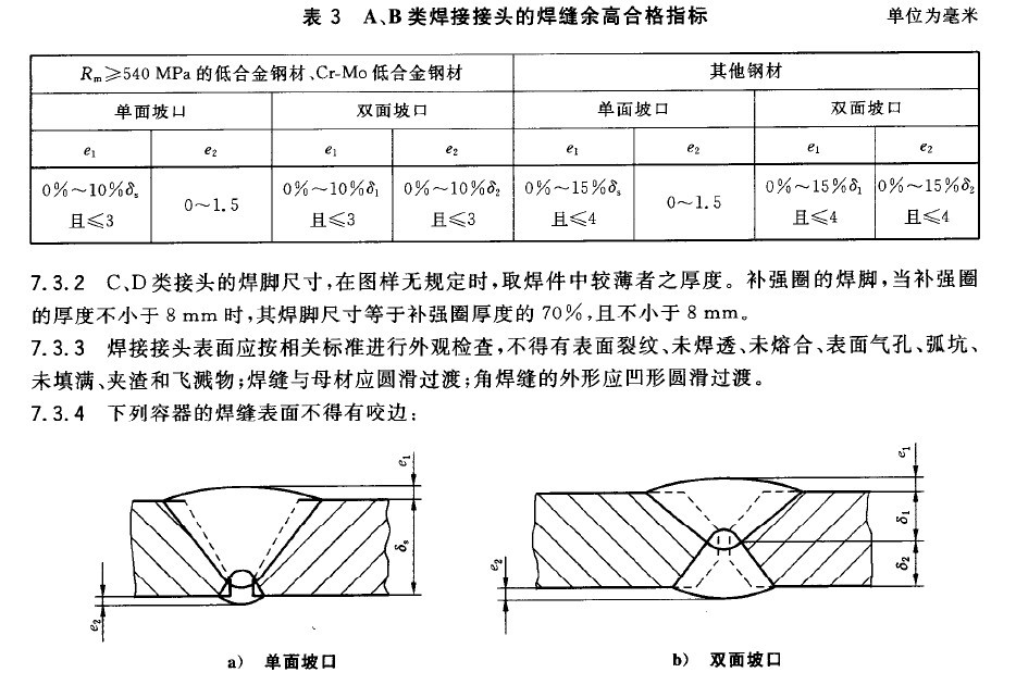?02? 余高的壞處?壓力容器不希望有突變,造成局部應(yīng)力集中。另外余高肯定有缺陷,這種缺陷很可能是產(chǎn)生疲勞裂紋的核。裂紋源→疲勞擴(kuò)展→斷裂。中國(guó)和日本曾經(jīng)聯(lián)合做過(guò)試驗(yàn),發(fā)現(xiàn)有余高的設(shè)備比打磨后沒(méi)有余高的設(shè)備使用壽命短2.0~2.5倍。?03? 標(biāo)準(zhǔn)對(duì)余高的要求