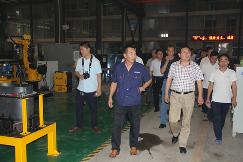 ? ? ?7月11日下午,獲嘉縣工信委、輝縣市工信委一行20余人來到明星機械進行參觀調研。我公司楊富春總經理帶領大家參觀了電氣車間生產現(xiàn)場、機器人焊接工作站和產品包裝區(qū)。參觀期間,楊總詳細介紹了企業(yè)生產經營和產品市場開拓情況,工信委領導對我公司生產現(xiàn)場、產品質量和先進工藝給予了積**的評價。